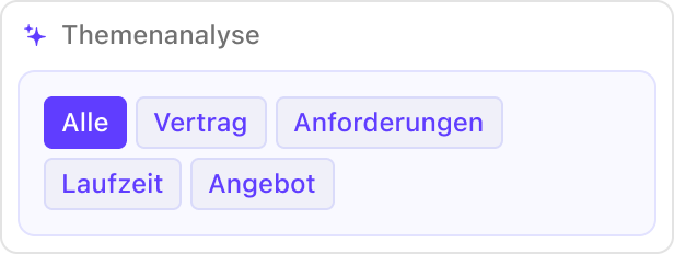 | Themenanalyse Analysiert und kennzeichnet Inhalte von Gesprächen je nach Thema.